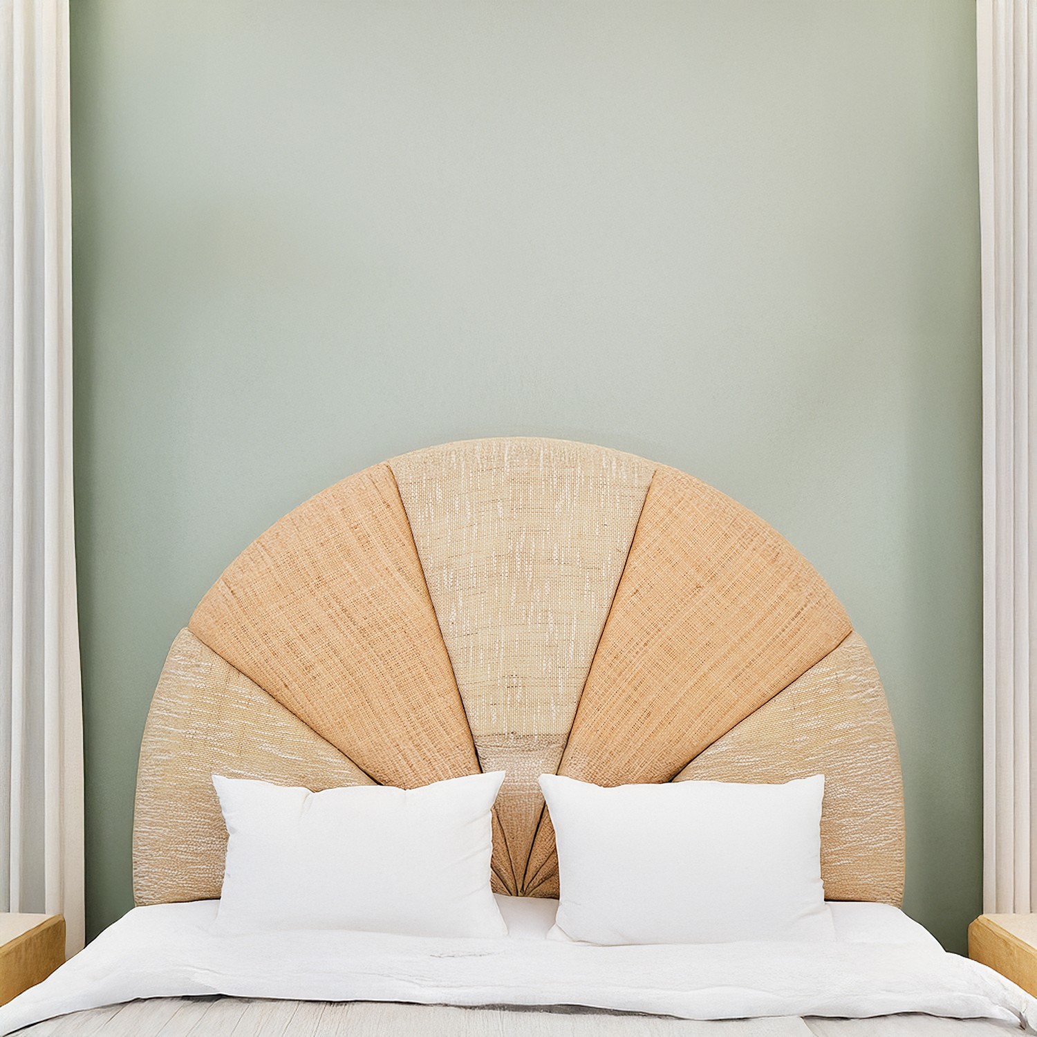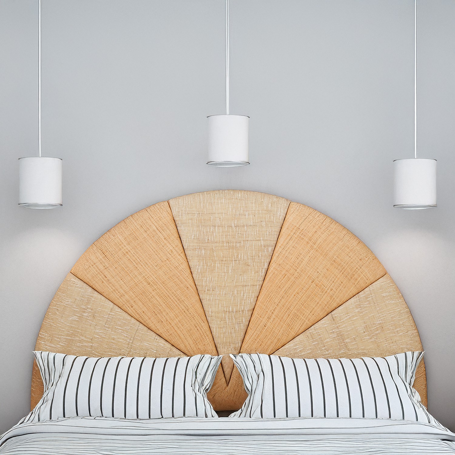 Cabecero de cama en ratán acolchado con trasera de madera.