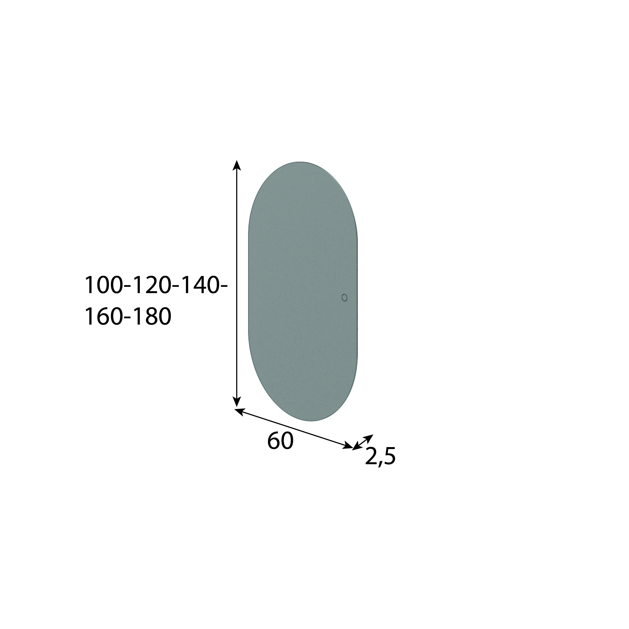 60 x 100 x 2,5cm, 60 x 120 x 2,5cm, 60 x 140 x 2,5cm, 60 x 160 x 2,5cm, 60 x 180 x 2,5cm