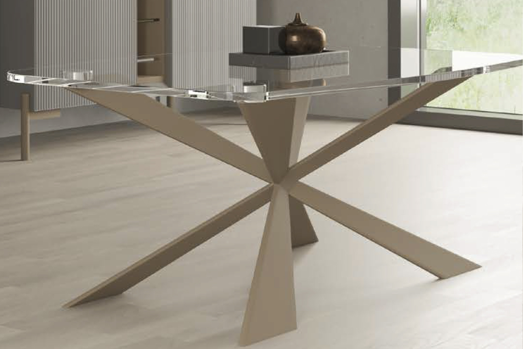Tapa en cristal y patas de metal en color personalizable.