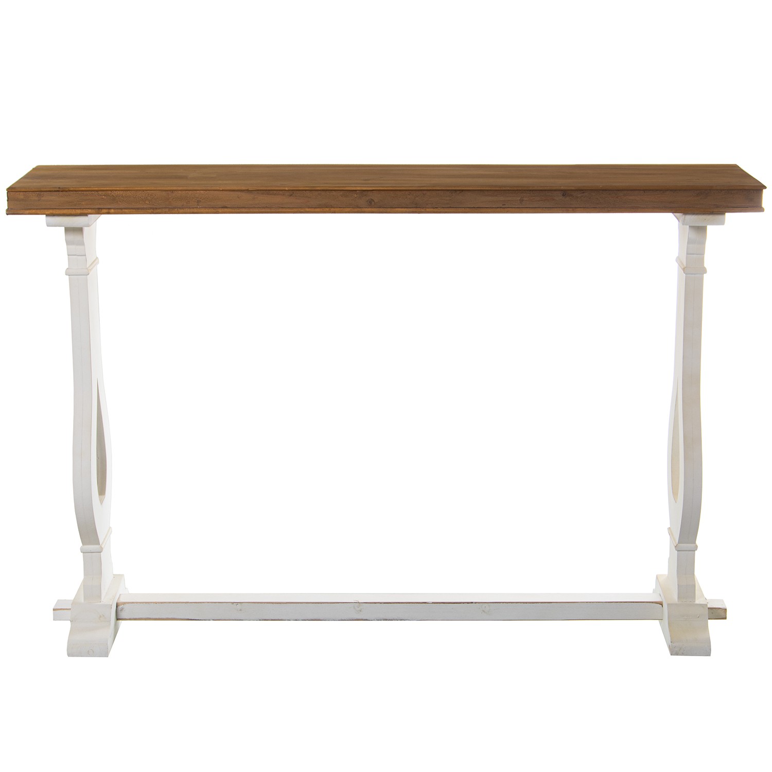 Tapa en color madera natural y patas en blanco antiguo.