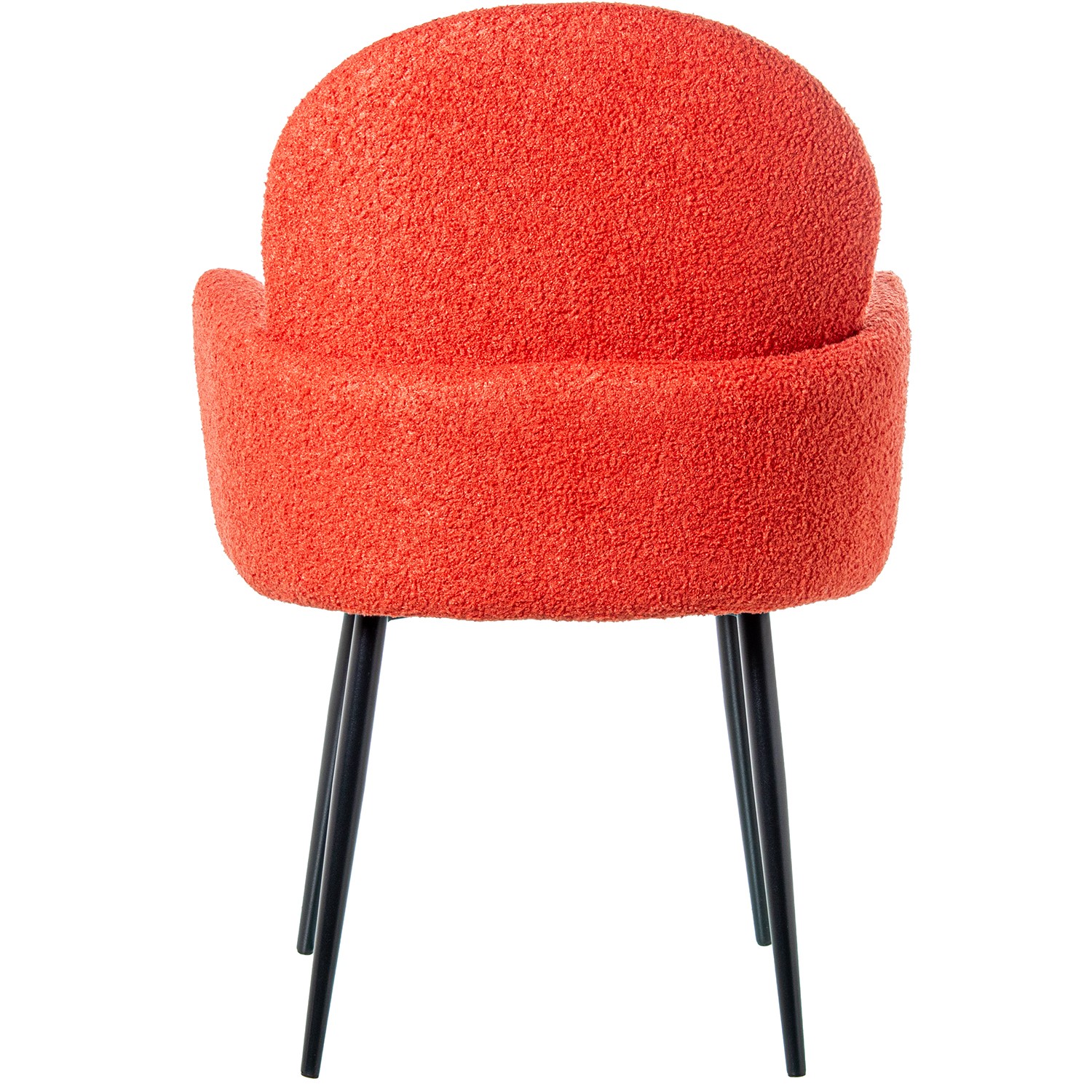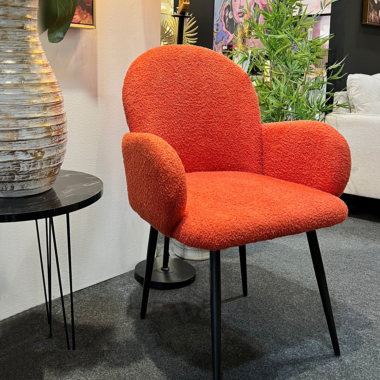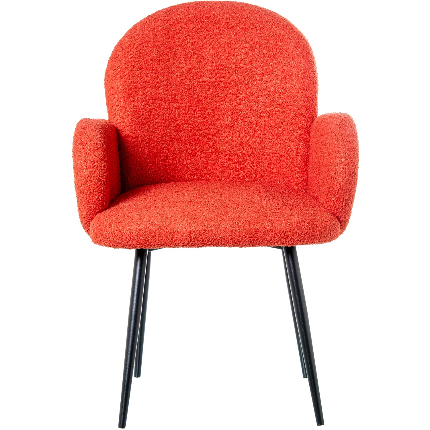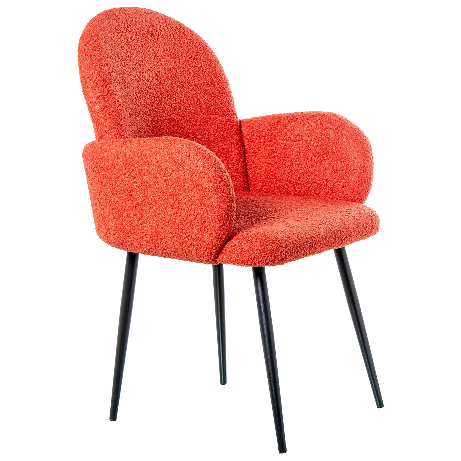 Silla tipo sillón tapizada con reposabrazos. Patas tubulares en metal negro.