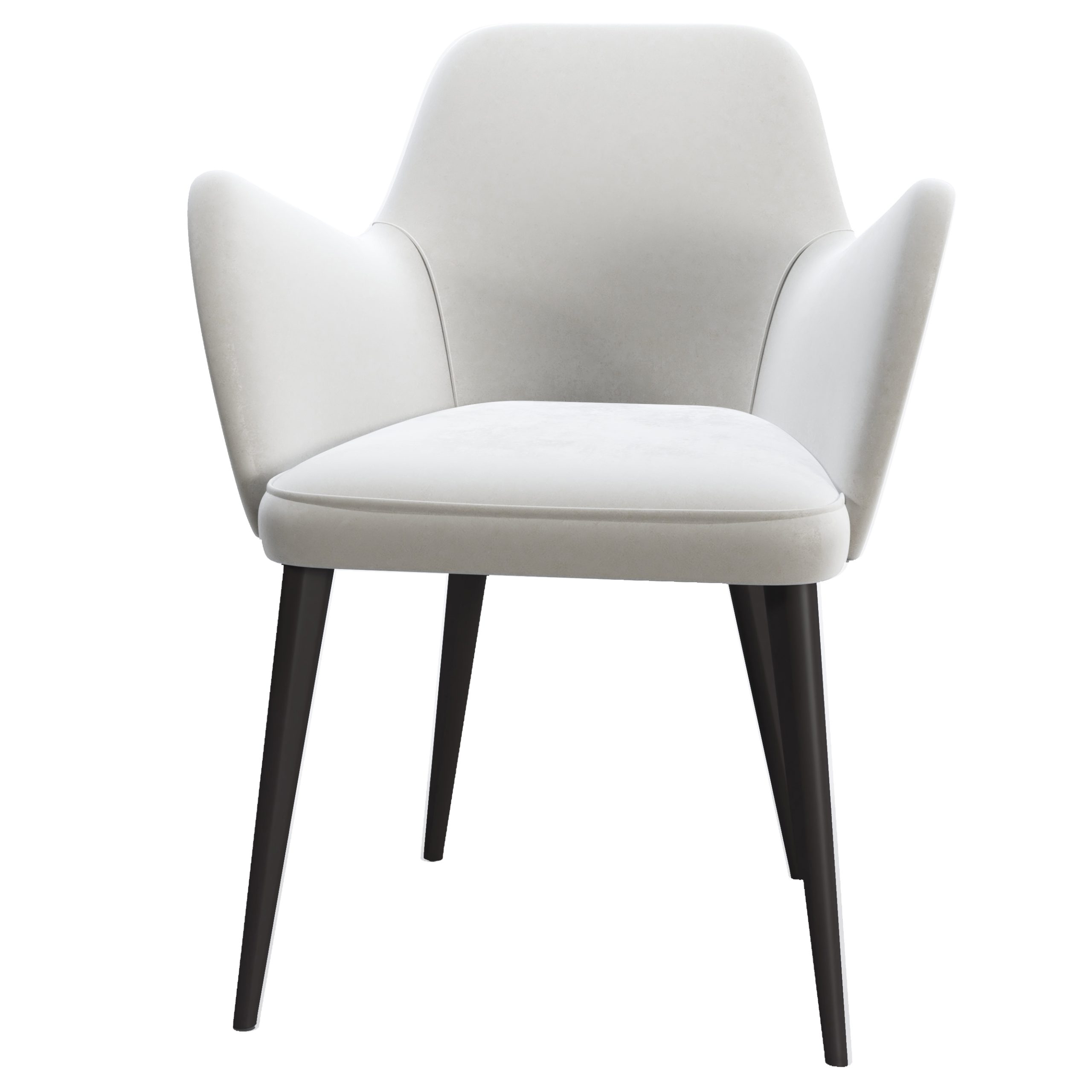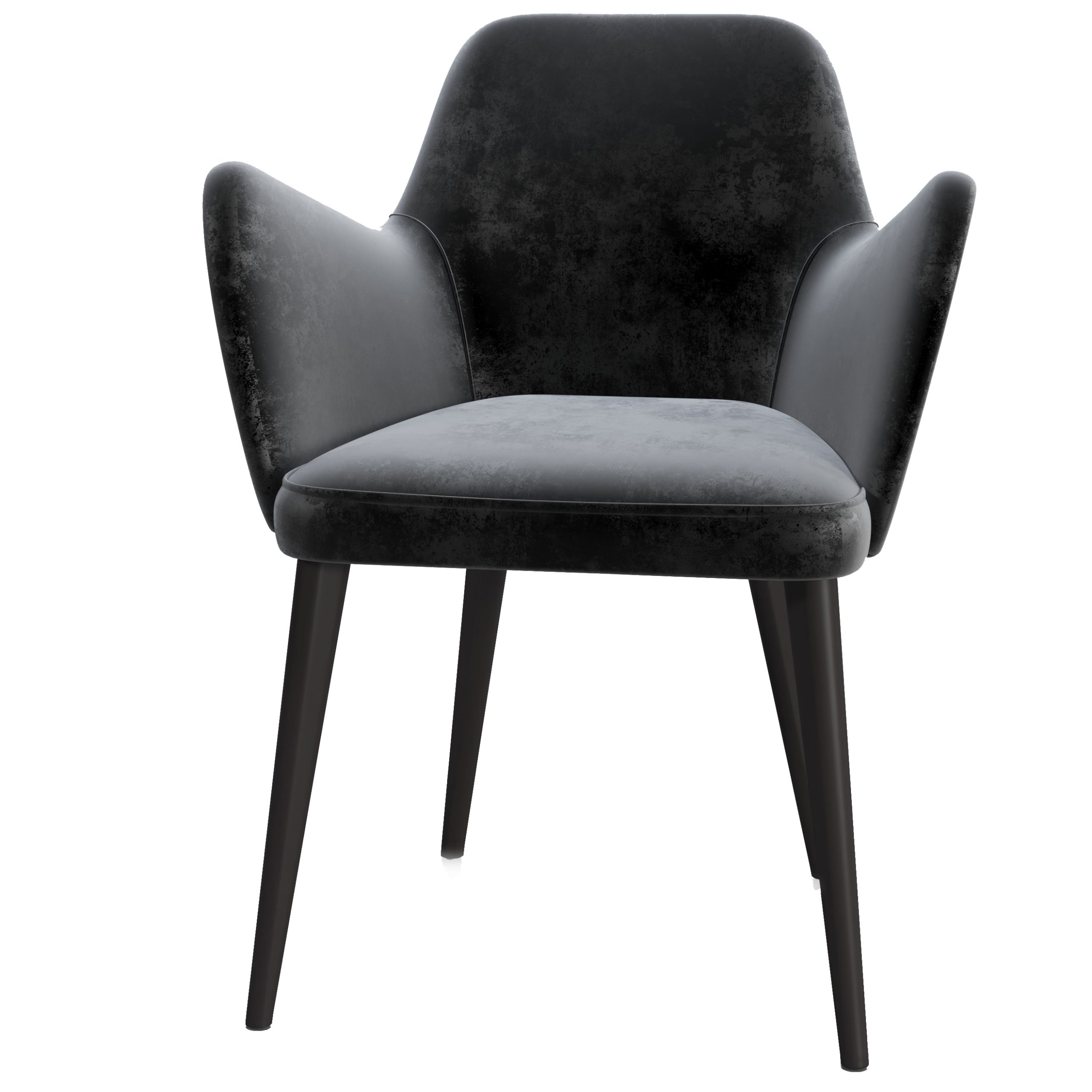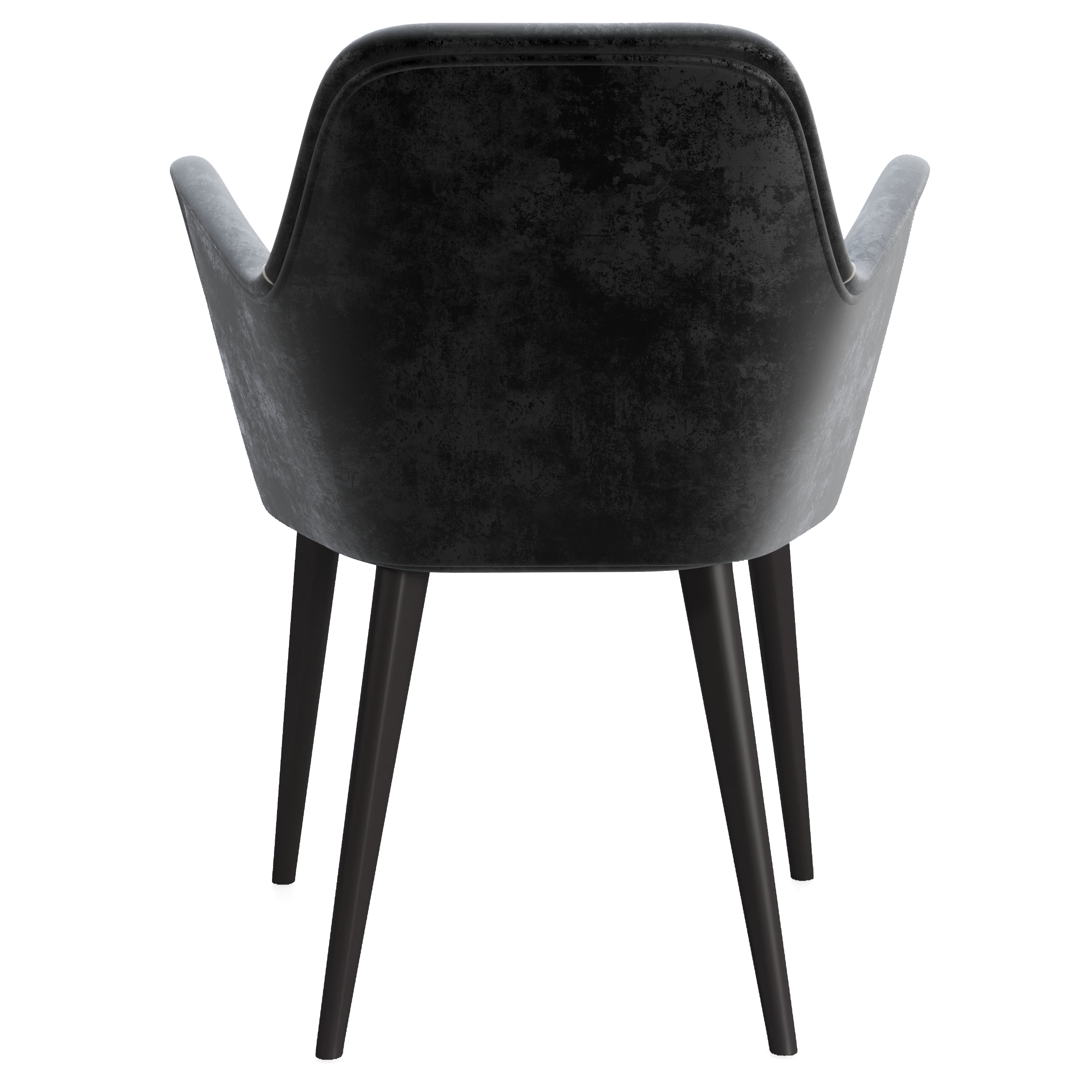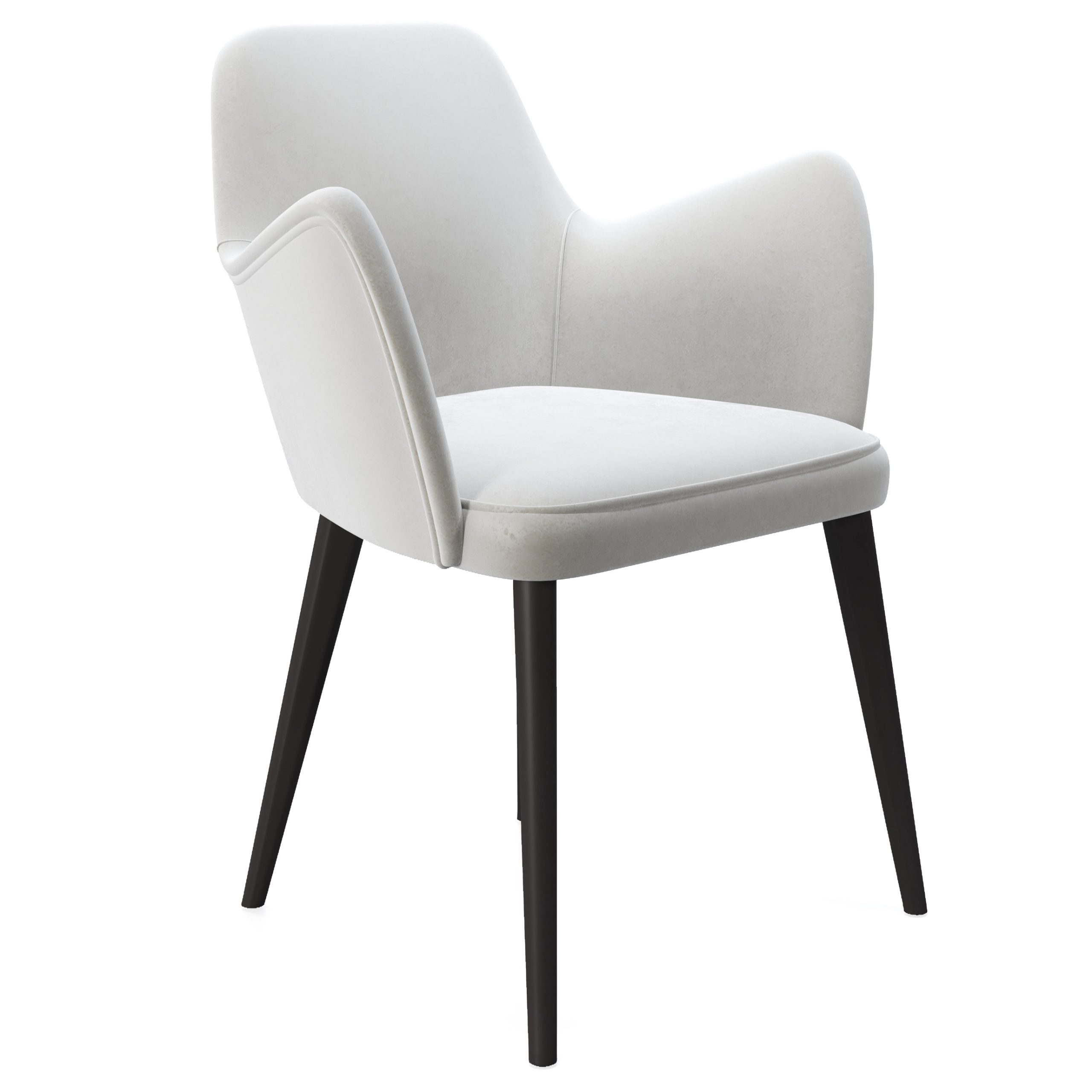 Silla tapizada en terciopelo. Patas de madera en color negro.