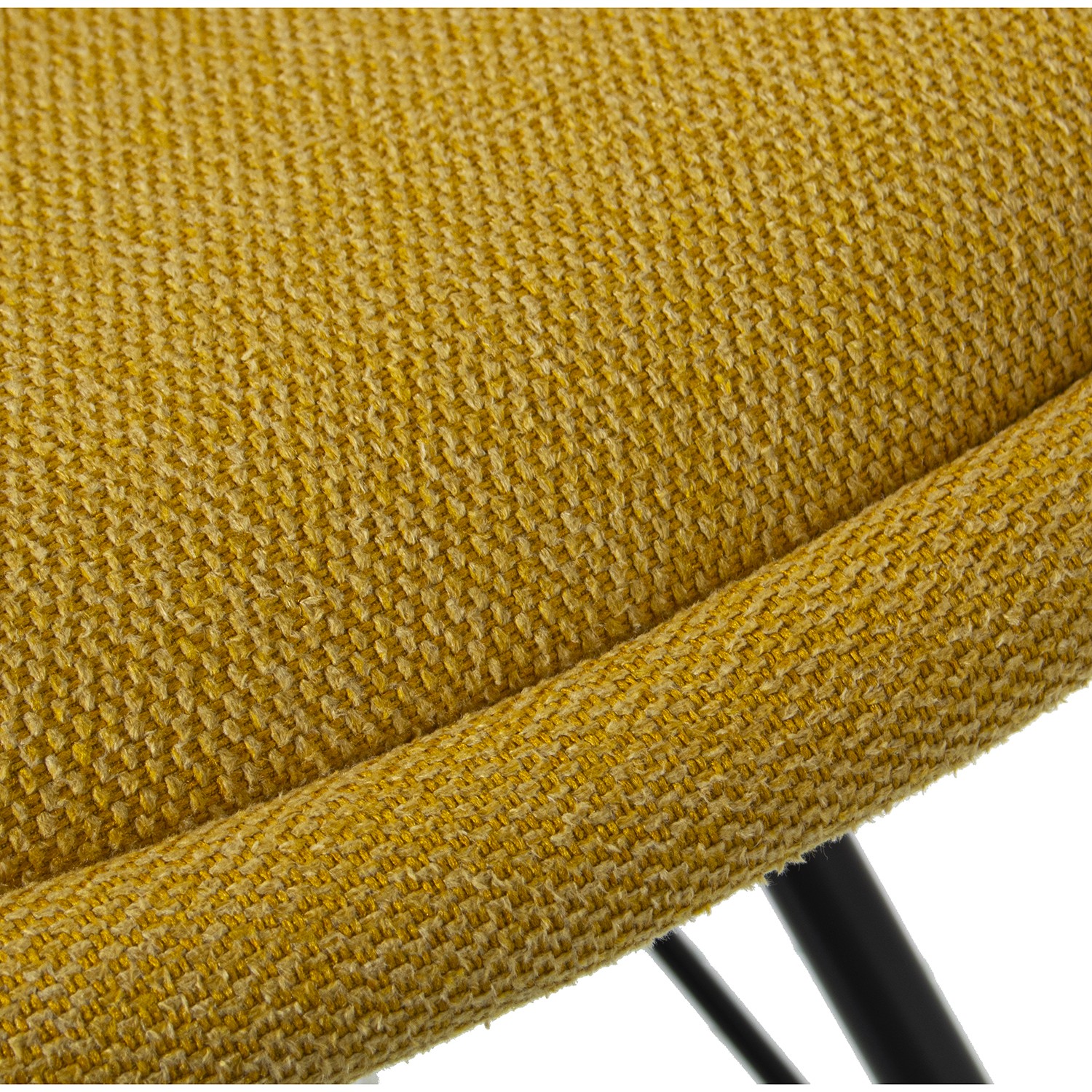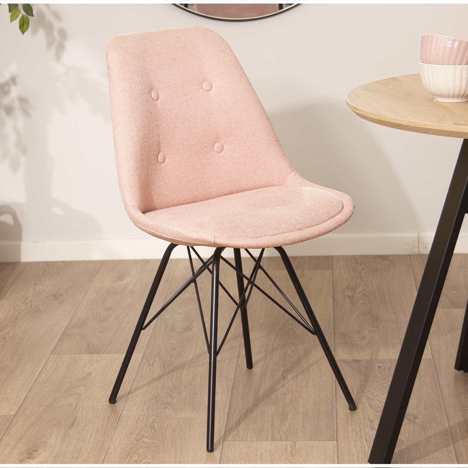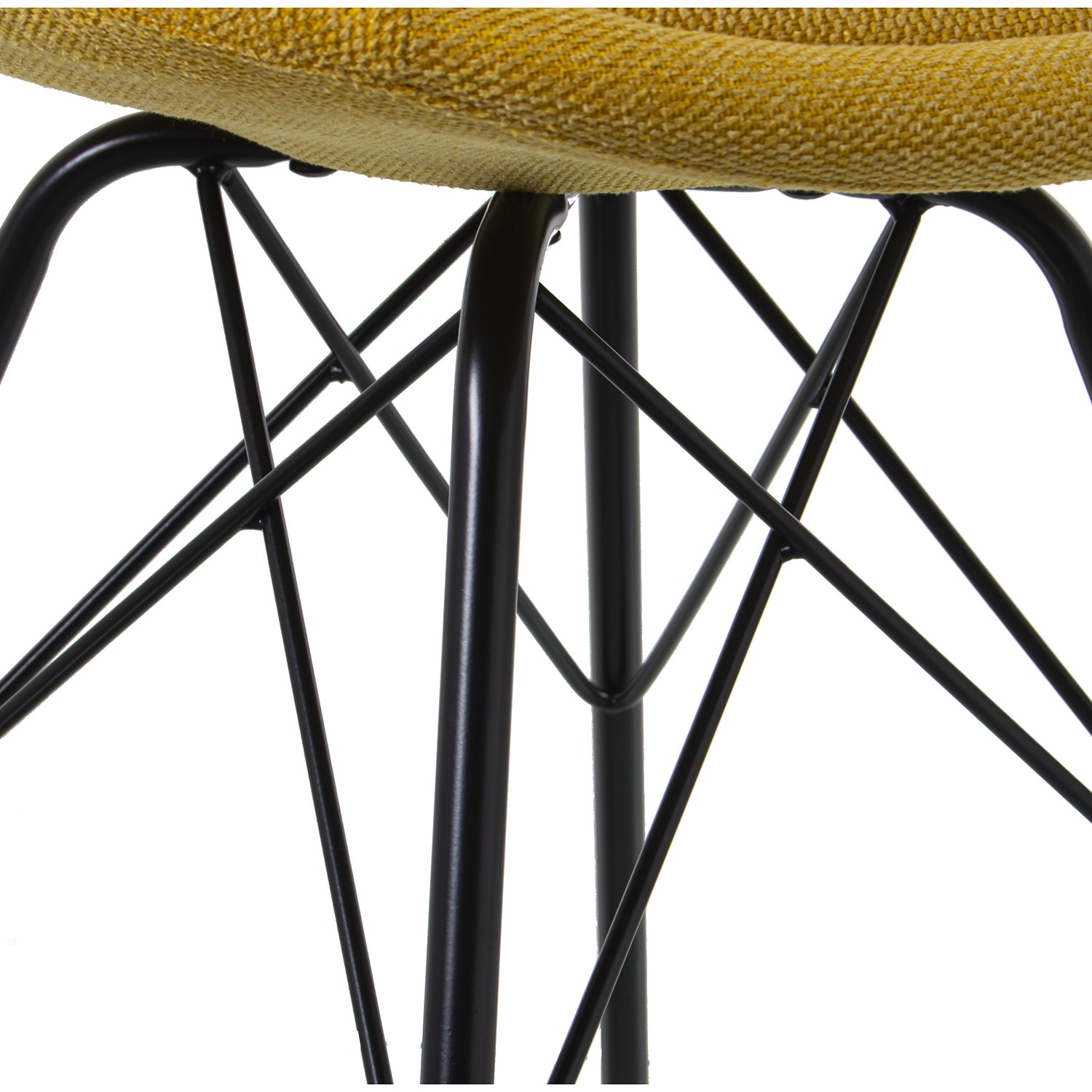 Silla tapizada en tejido poliéster. Patas metálicas negras.